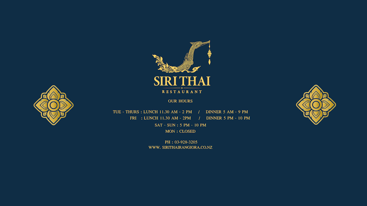 Siri Thai Restaurant, located at 4/246 High Street in Rangiora 7400, New Zealand, offers a delightful dining experience with authentic Thai flavors that will transport your taste buds straight to Thailand. Whether you’re visiting for a casual lunch, a relaxing dinner, or a sweet dessert, this Thai gem promises to satisfy every craving with its carefully crafted menu.