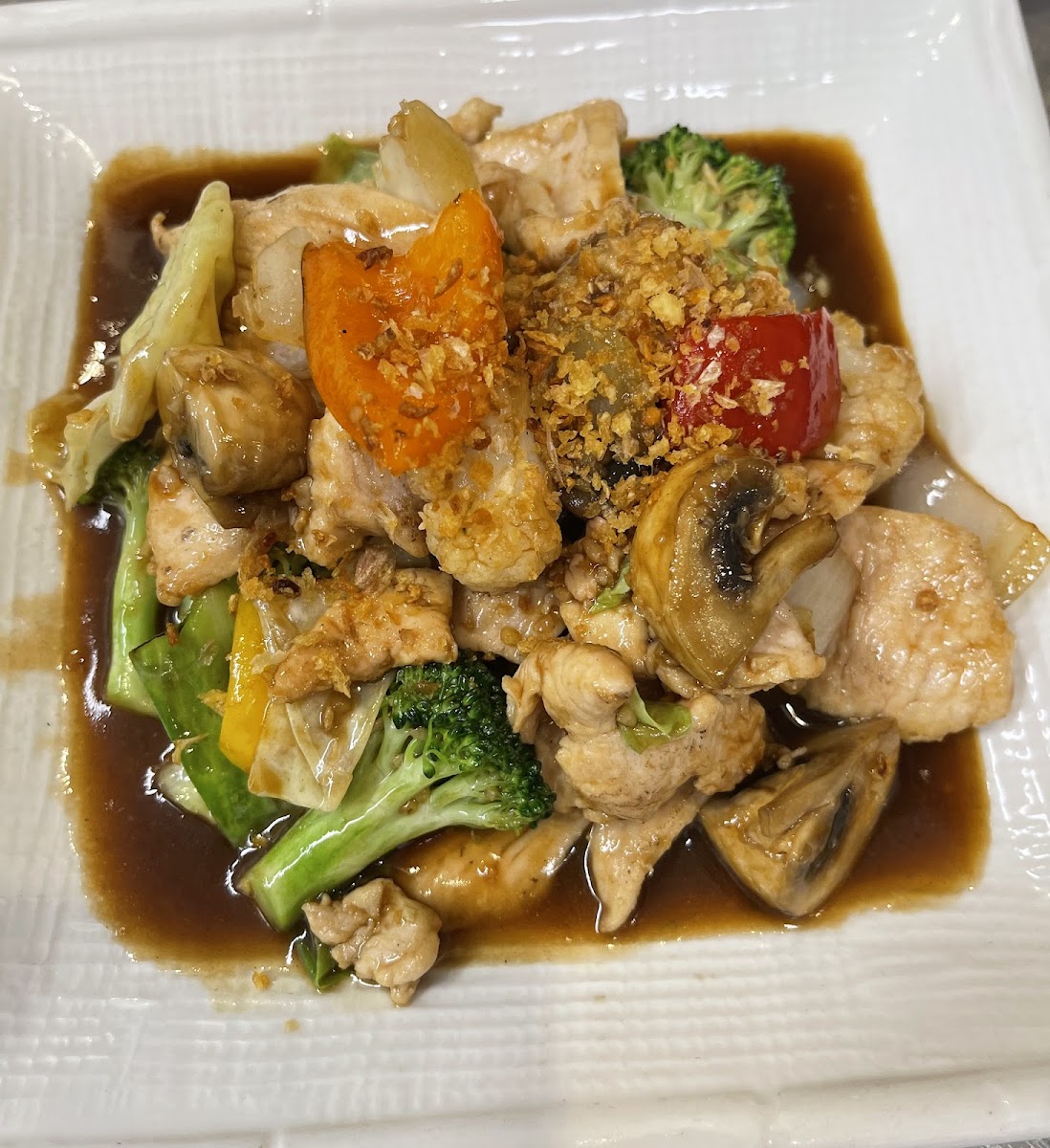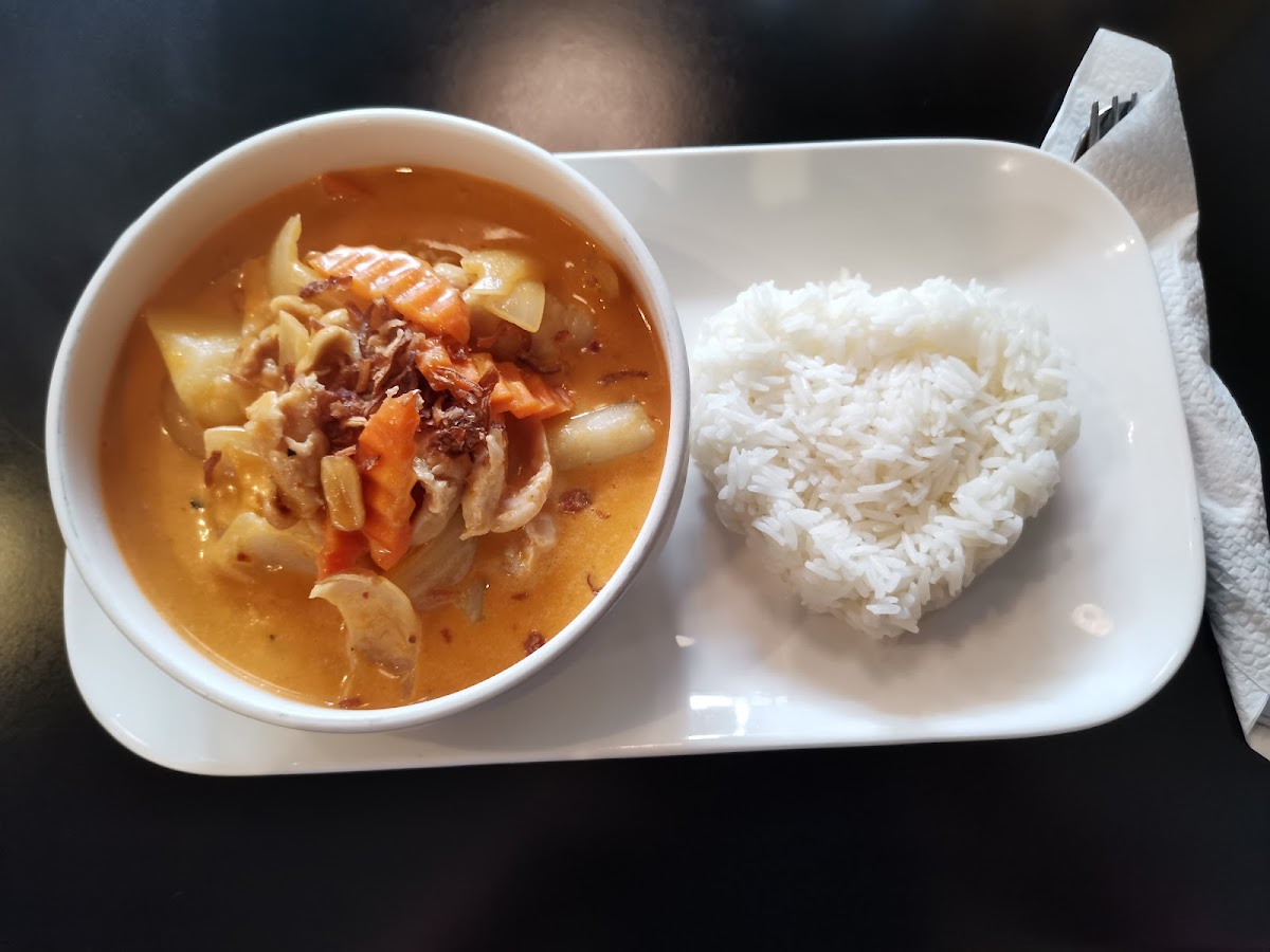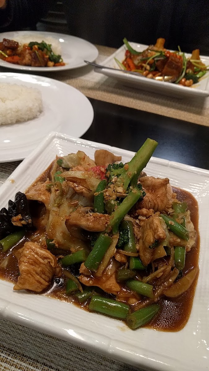 The restaurant is known for its signature dishes that bring together the best of Thai cuisine. If you're in the mood for something hearty, the Fried Rice is a must-try. This dish is a perfect balance of flavors, with perfectly cooked rice combined with vegetables, eggs, and your choice of protein. For something with a little more kick, the Stir Fry Ginger Chicken offers a tantalizing blend of fresh ginger, vegetables, and tender chicken stir-fried to perfection. If you prefer a rich, comforting curry, the Massaman Curry will surely hit the spot. With its delicate coconut milk base and blend of aromatic spices, it’s the perfect choice for those seeking a savory and satisfying meal. Another highlight is the Pad Num Prick-Phao, a stir-fried dish featuring sweet and savory flavors, perfect for anyone craving something full of depth and flavor. And for a refreshing, light dish, the Thai Beef Salad brings a burst of freshness with tender slices of beef, fresh herbs, and a tangy dressing.
